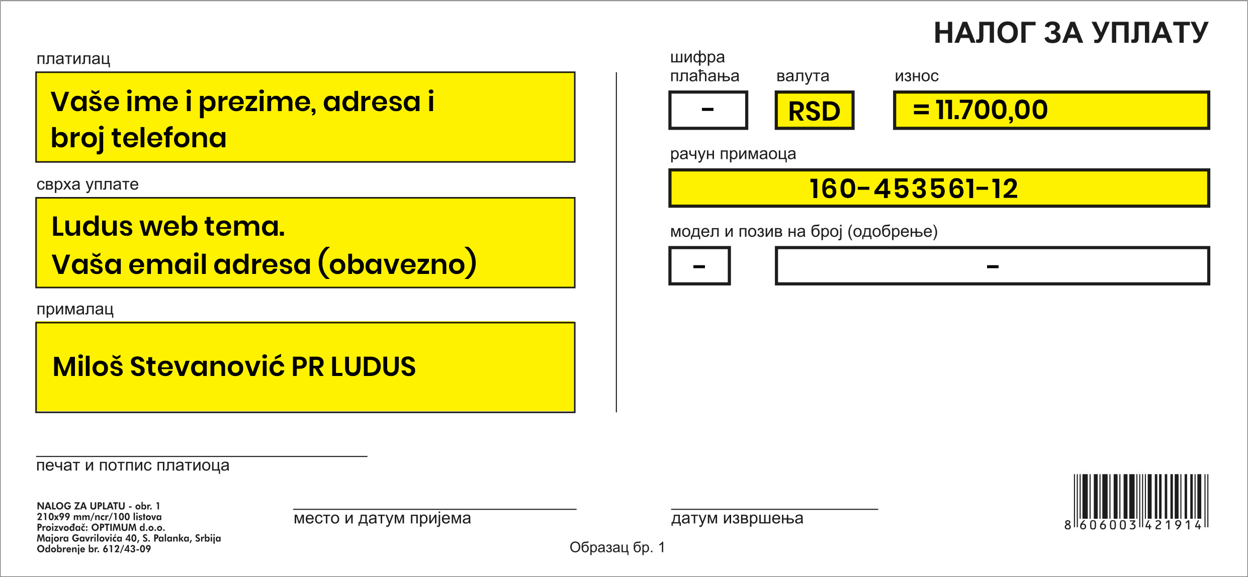 Ukoliko želite da uplatite Ludus web temu za online biznise, sledite sledeće instrukcije: